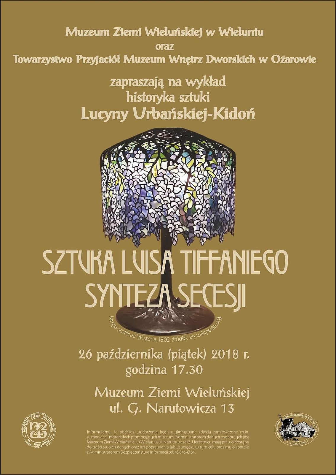 26 października w Muzeum Ziemi Wieluńskiej odbędzie się wykład historyka sztuki Lucyny Urbańskiej – Kidoń „Sztuka Luisa Tiffaniego”.