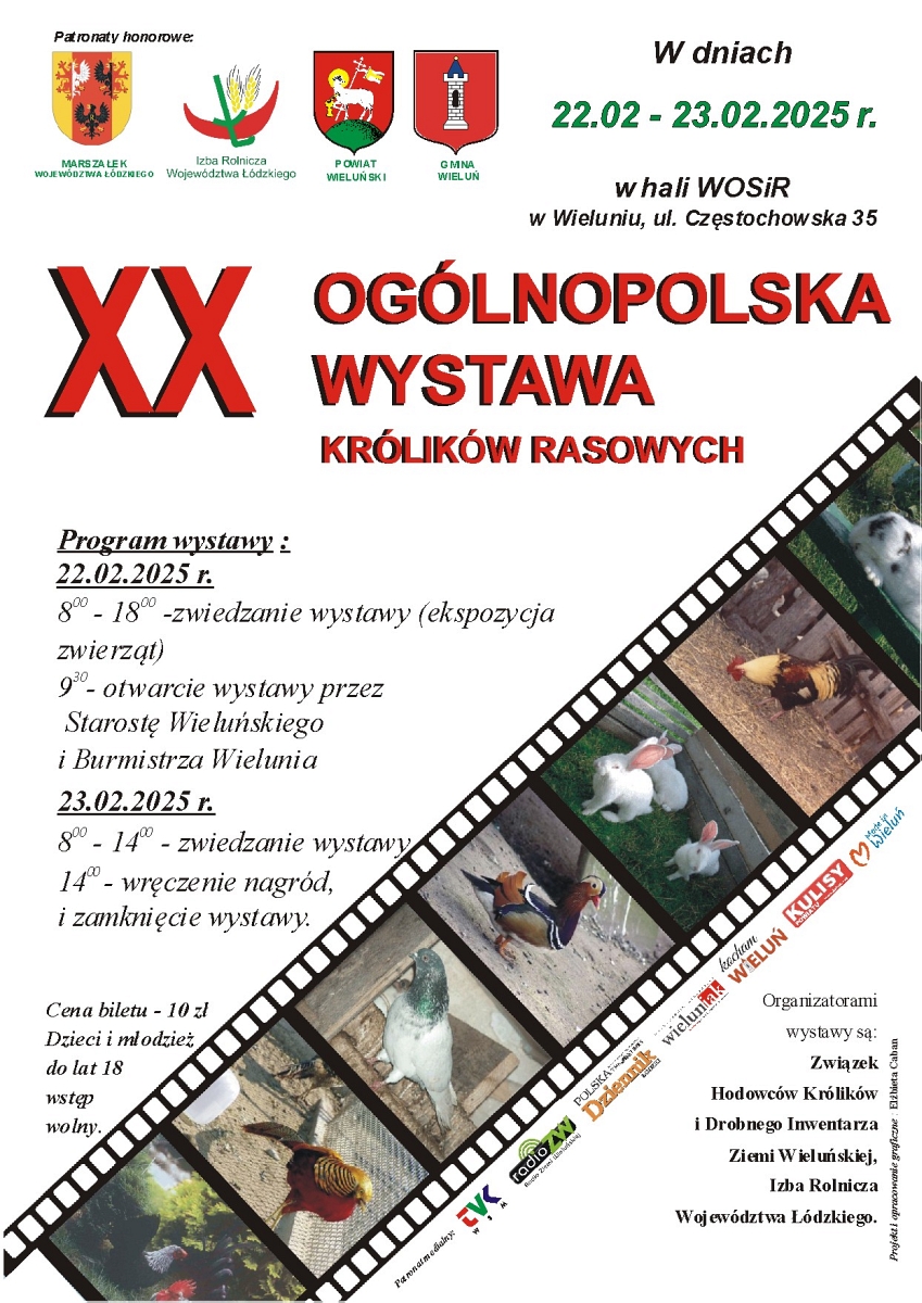 Na wydarzenie, w hali WOSiR w Wieluniu przy ul. Częstochowskiej 35, zapraszają: Związek Hodowców Królików i Drobnego Inwentarza Ziemi Wieluńskiej oraz Izba Rolnicza Województwa Łódzkiego. Więcej szczegółów na plakacie.