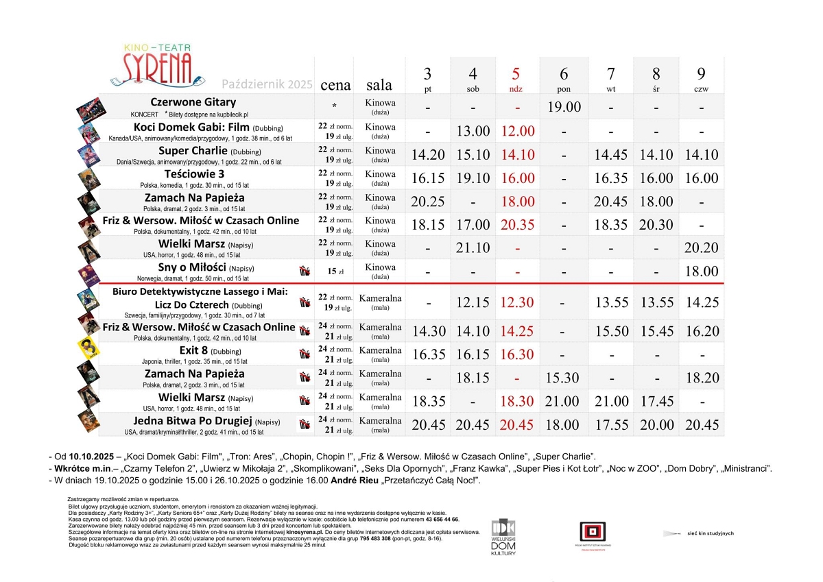 Nowy repertuar będzie grany na deskach „Syreny” w dniach od 3 do 9 października. Szczegóły na plakacie.