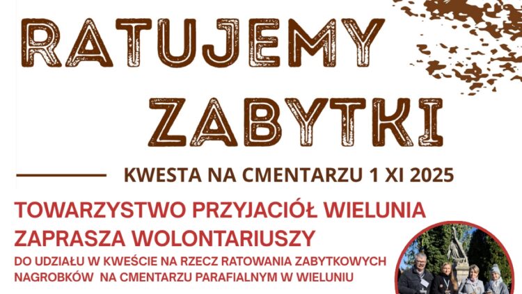 Już 1 listopada Towarzystwo Przyjaciół Wielunia wspólnie z Parafią Nawiedzenia Najświętszej Maryi Panny w Wieluniu po raz drugi zorganizuje kwestę na rzecz ratowania zabytkowych nagrobków na wieluńskim cmentarzu.