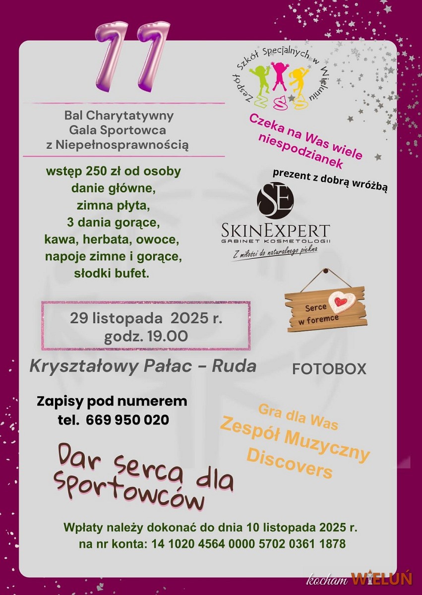 Wkład osób wspierających Zespół Szkół Specjalnych w Wieluniu sprawia, że wychowankowie mogą nie tylko aktywnie uczestniczyć w życiu sportowym ale także rozwijać umiejętności, które procentują w ich codziennym życiu. Dzięki tej pomocy kolejne marzenia, jeszcze niedawno odległe, stają się realne. XI Gala Sportowca z Niepełnosprawnością będzie więc nie tylko uroczystością pełną emocji, ale również pięknym dowodem na to jak wiele można osiągnąć kiedy ludzie łączą siły, wspierają się i wspólnie wierzą w potencjał młodych sportowców. To wieczór, w którym triumfują nie tylko wyniki sportowe, ale przede wszystkim dobro, solidarność i ogromna wartość ludzkiego serca.