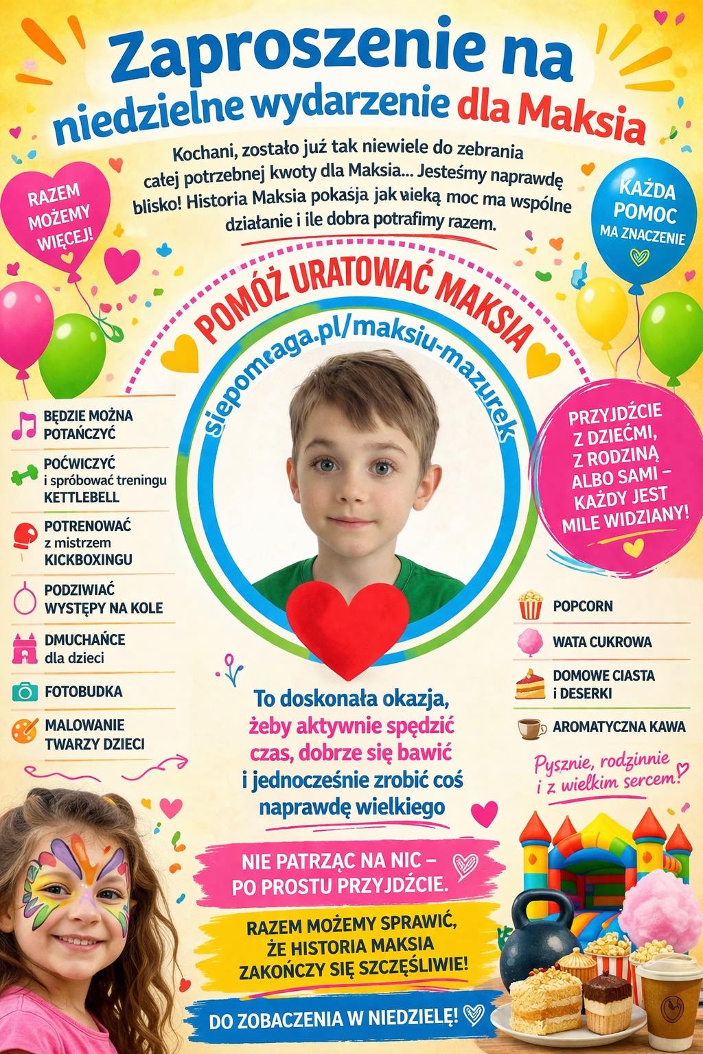 To wydarzenie pokazuje, jak wielką siłę ma wspólnota. Każdy gest, każda złotówka i każda obecność przybliżają Maksia do szansy na życie bez postępującej choroby. To także przypomnienie, że za liczbami i zbiórkami stoi konkretne dziecko, jego marzenia, codzienność i przyszłość, która wciąż może zostać napisana na nowo.
